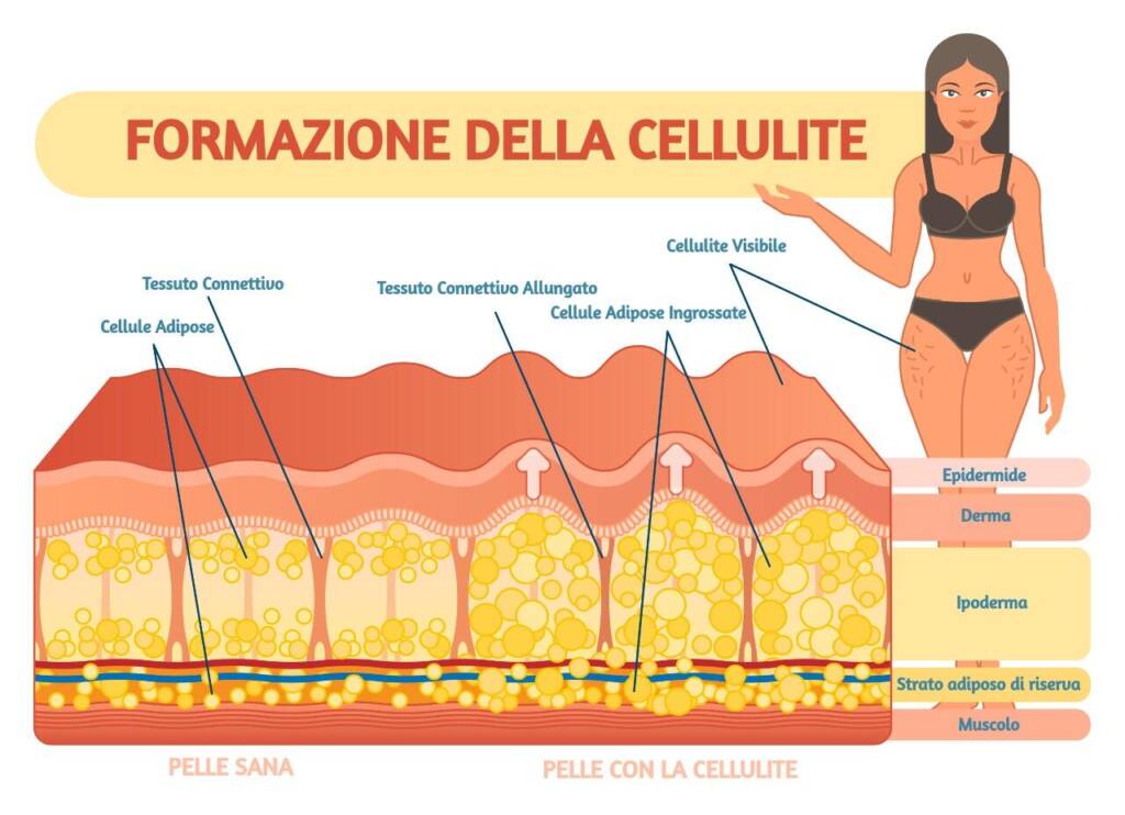 La cellulite è un insieme di grasso, acqua e sostanze di scarto che ristagna in zone sottocutanee localizzate.