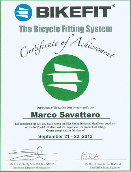Visualizza il Suo Attestato di Bike Fitting conseguito presso BikeFit, London (UK)