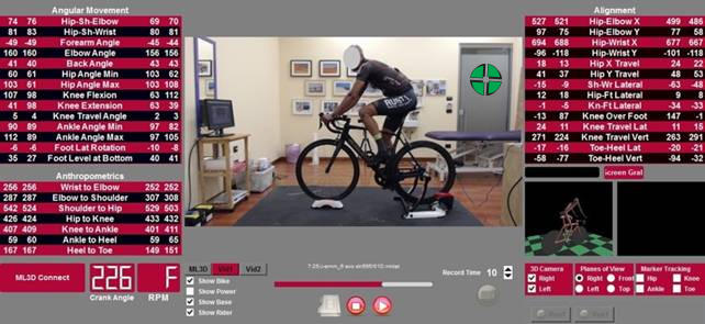 È possibile effettuare un’analisi del movimento articolare BILATERALE e in 3D, con una risoluzione di 100 fps (una misurazione ogni 3º pedalando a 100rpm).
